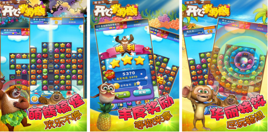 熊出没题材为特色的热门作品,搞怪的熊熊欢乐不停歇,熊出没动画中森林小动物都以可爱的头像呈现在关卡中,通过变换动物位置完成消除,胜利通关之后获得丰厚奖励。每次消除都能触发华丽特效,尽情畅玩,除了有经典的光头强,熊出没之外,还有吉吉国王,等等,超多可爱的动物。