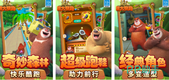 熊出没动画正版授权,控制熊熊或者光头强在森林与马路当中完成跑酷,穿梭奇妙森林,享受无限惊喜,一路上除了会受到敌人的追击,还有很多障碍,甚至也会出现红绿灯,要按照相应的道路规则,完成跑酷互动。为了获得极高的奔跑能力,可以选择超级跑鞋,助力你快速前行。