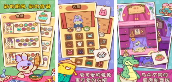 卡通的风格所渲染,兔兔的蛋糕店正式营业,在开店之前也做足了各种宣传工作,因此吸引很多顾客的光顾。装修蛋糕店的时候,每个细节都是为顾客来考虑,也想为顾客装修成特别浪漫的就餐环境,还有很多全新的食谱都等大家逐渐解锁,各种新鲜的食材都是精挑细选选择而来,用手指点击就能够制作出创新的蛋糕。