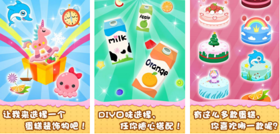 很多家长都想提升孩子的动手能力,就比如在现实生活中经常会为孩子挑选各种积木或者是乐高玩具等等。宝宝做蛋糕儿童游戏也是非常不错的选择,此类型的游戏都是专门为3~8岁的儿童所设计,各种制作蛋糕的食材全部集结,比如有新鲜的牛奶,或者是精挑细选的面粉等等,在没有任何限制的情况之下,大家可将各种材料结合在一起,制作出外观精美的蛋糕。