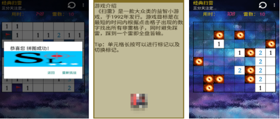 比较锻炼大家的推理能力,这也是上线时间比较久的一款益智类手游。在不同难度中,大家都可随意挑选,从简单再到困难。核心的要求就是需要利用最短的时间,在这些空白格子当中寻找到带有数字的格子。但是在寻找数字的过程中,千万不要触碰到雷区,否则就会导致游戏失败,一旦触碰雷区之后全盘皆输。