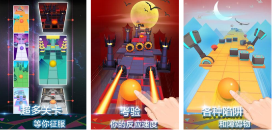 3d的物理引擎技术所展现。以创新式的跑酷玩法为核心,还刻画出很多绚丽多姿的场景,比如森林或者是山丘等等。手指滑动屏幕就可以控制其中的小球完成左右移动的任务,沿途会随机出现大量的障碍物,及时躲避障碍物,顺利到达终点,还形成数10款不同的地形地貌,每个赛道当中都会呈现出极高的随机性。比较锻炼大家的手速和反应能力。