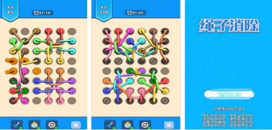 益智解谜为主要核心,在开局之后将会看到各种绳子错综复杂的连接在一起,大家要仔细观察,合理规划,按照正确的顺序将这些绳子全部一一解开,刚开始挑战时难度并不是特别高,可能只会出现几根绳子而已,但随着关卡难度升级之后,将会有眼花缭乱的画面,造成视觉困扰。