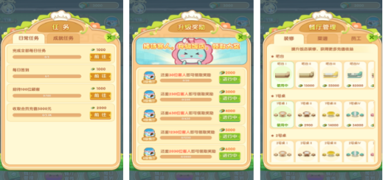 治愈性很强的画风,可爱小动物是其中的主要角色,你也化身为餐厅的老板,需要设计出个性化的梦幻餐厅。其中的食材类型多样化,每种食材都非常新鲜,而大家通过食材随意组合的方式就可解锁更多新菜谱,还可创新出美味菜肴。经营餐厅时,每个细节都需要亲自来操控,比如食材的采购,再到服务顾客等等,致力于增加顾客的服务满意度。还有很多装饰品,任由大家随意摆放,比如桌椅板凳或者是空调等。通过赚取金币的方式,也可升级设备或者扩大店铺的规模。