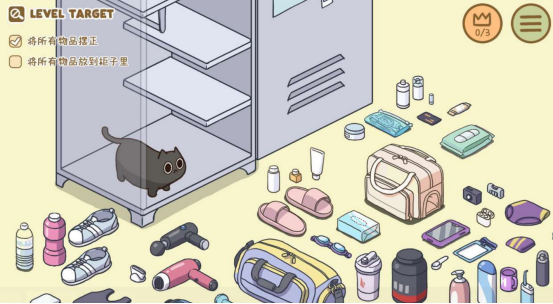 治愈性非常强的收纳类型手游,将有各种可爱的猫咪或者是生活中的日常用品全部集结,在开局之后,每个关卡中都有大量的日用家居物品随意的摆放在那里,大家的核心任务就是用手指拖动的方式,将这些物品井然有序地放置在货柜上,通过简单的操作,就能够让整体的场景变得干净整洁,还能完成闯关。