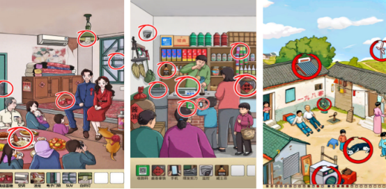 比较锻炼观察能力以及专注力的找茬类手游,将会看到很多脑洞大开的关卡内容,每个关卡,仿佛让自己也回到了曾经的80 90年代中,还充满着浓郁的怀旧气息,就比如有特别复古的小卖部,或者是破旧的家中,但是在这些环境里面却隐藏了很多和当时年代不符合的物品,比如有智能机或者是空调等等。仔细观察,将关卡中所有不符合当时年代的物品全部找到,即可完成挑战。