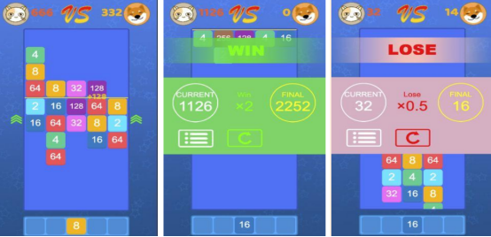 屏幕会被一分为二,创作的灵感完全是来自于经典的2048之上,屏幕中央会有一条分界线,位玩家各选择屏幕的一方用自己聪明的头脑合理规划,将两个相同的数字方块放在一起,就可合成更高等级的数字,比如4和4相互碰撞后就会形成8.在规定的时间之内合成的数字越大,获得的分数也会越高,从而也可将对方的方块推向底部。