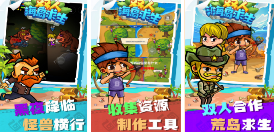 双人同屏畅玩的游戏,开局后就会共同被困在一座荒无人烟的岛屿上,比如出现食物资源短缺,或者是每当夜晚降临时,也会有大量饥饿的怪兽汹涌来潮,比较考验的就是大家的勇气,需要通过共同收集资源或者是建造武器的方式,才能努力的生活下去,玩法还有极高的自由度,努力在荒岛当中求生存。