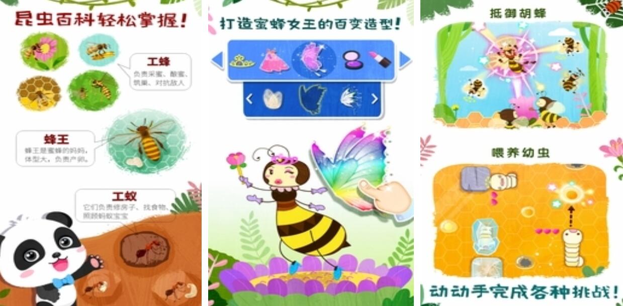以昆虫生命科学为内核的互动式学习应用。孩子可参与幼虫喂养、观察蜕皮与羽化全过程,理解完全变态发育概念。当黄蜂入侵蜂巢时,需操控炮台进行瞄准射击,在动态对抗中锻炼手眼协调与即时反应。所有昆虫形象均经卡通化处理,形态特征保留科学准确性,兼顾童趣与知识严谨性。