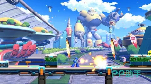 本作延续横版动作射击核心机制,以“击败BOSS并复制其武器”为标志性玩法。玩家操控蓝色战斗机器人,在充满未来废土氛围的都市遗迹中推进关卡。通过蓄力射击、精准跳跃与地形互动突破敌方防线,每场BOSS战均需针对性调整战术。击败首领后可永久习得其专属武器,形成动态能力组合,强化成长反馈与关卡重玩价值。