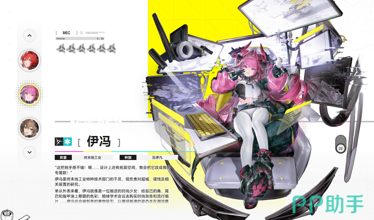 伊冯是《明日方舟》与《终末地》IP联动中瓦伊凡阵营推出的限定干员,外观以粉白配色为主,形象兼具少女感与科技感,人设设定为深度技术宅,擅长低温工程与自主机械协同作战。作为冰属性远程术师类干员,其核心机制围绕“冻结—破冰—连锁反应”展开,具备明确的控场+爆发双维度能力。