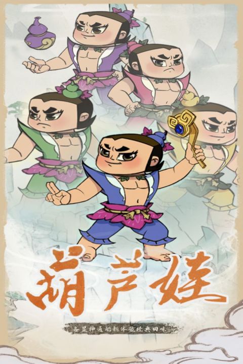 延续国风美学理念,美术风格兼具传统线描韵味与现代渲染质感。除葫芦七兄弟外,拓展引入姜子牙、白无常等神话体系角色,丰富世界观架构。核心剧情紧扣“营救爷爷”主线,在保留经典叙事张力基础上,加入趣味性妖怪驯化机制——成功击败敌方单位后,可指派其参与葫芦山建筑建设,形成资源循环成长路径。