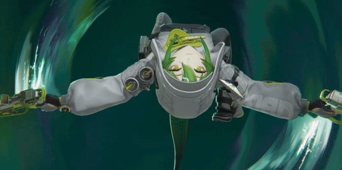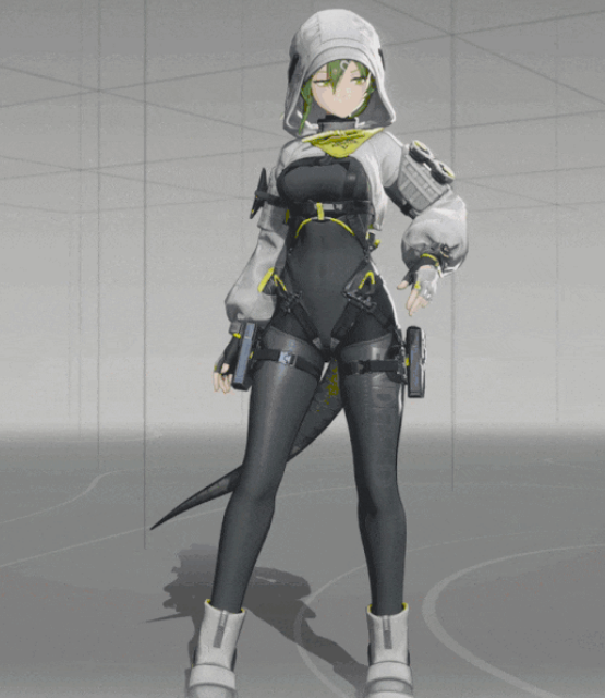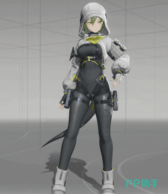 角色的待机动作也做得挺细致,即便是站着不动的时候,萤石也会做出一些随性的小动作,那种不羁的姿态表现得很明显,看起来随时准备投入下一场战斗。作为菲迪亚种族的成员,再加上终末地工业阵营的标识,让这个角色的整体形象更加饱满了。