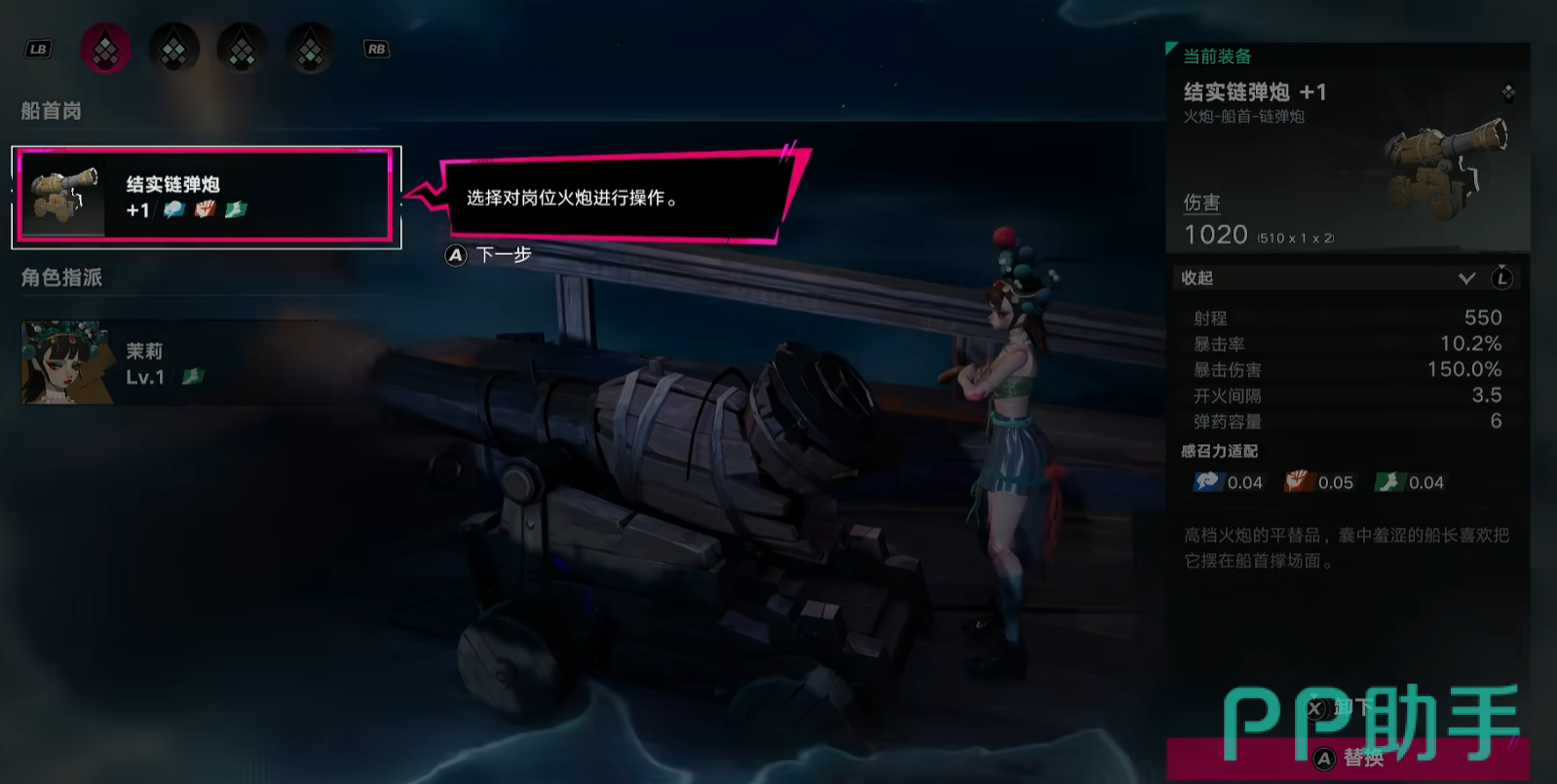 该火炮支持强化系统,随等级提升可同步增强各项基础数值,显著提高整体战力。每门火炮可绑定一名角色,推荐优先指派茉莉操作——其技能加成可提升瞄准精度与命中稳定性,从而放大火炮实际输出效能,形成高效人装协同。