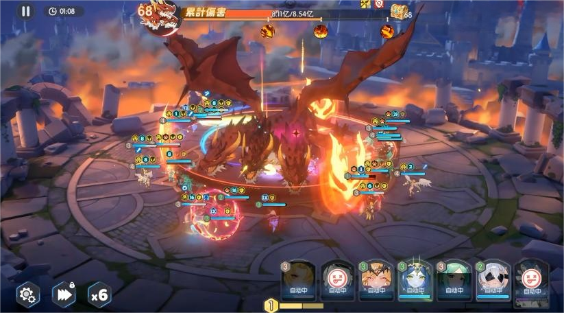 当Boss血量降至约65%时,正式进入第二阶段——狂暴模式。此时无眠魔龙将频繁释放火焰弹幕,对全体单位造成中等范围伤害,并附带灼烧持续掉血效果。治疗角色生存压力陡增,务必为其配置减伤护盾或驱散抗性装备;雷神、炎魔等高爆发元素系角色在此阶段输出效率最高,需重点保护其存活,一旦核心DPS阵亡,团队将迅速陷入溃败。
