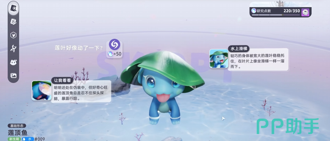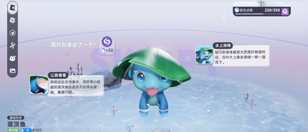 当前版本唯一具备群体治疗能力的水属性伊莫。主动技能“治愈之水”可恢复全体队友生命值,基础回复量为自身最大生命值的6%,随后进入持续治疗状态,每秒恢复量为释放者最大生命值的1%。该机制特别适合在主C完成一轮输出后切换上场,保障后台单位生存稳定性。进化路径为莲顶鱼→顽皮鱼(解锁二级游泳能力,提升水下移动效率)→莹冰龙(获得冰属性附加效果,扩展元素应对维度)。