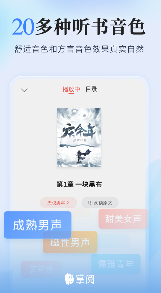 经常读书能够提升一个人的气质以及内在,虽现在的书籍多以电子版出现,但长期盯着手机对眼睛固然不好,那么有什么听书软件下载分享?如果自己喜欢的书籍能够寻找到舒服的声音为你朗读的话,那么这种阅读体验自然是无与伦比的,相比自己抱着手机盯着屏幕而言也会更加的舒适。