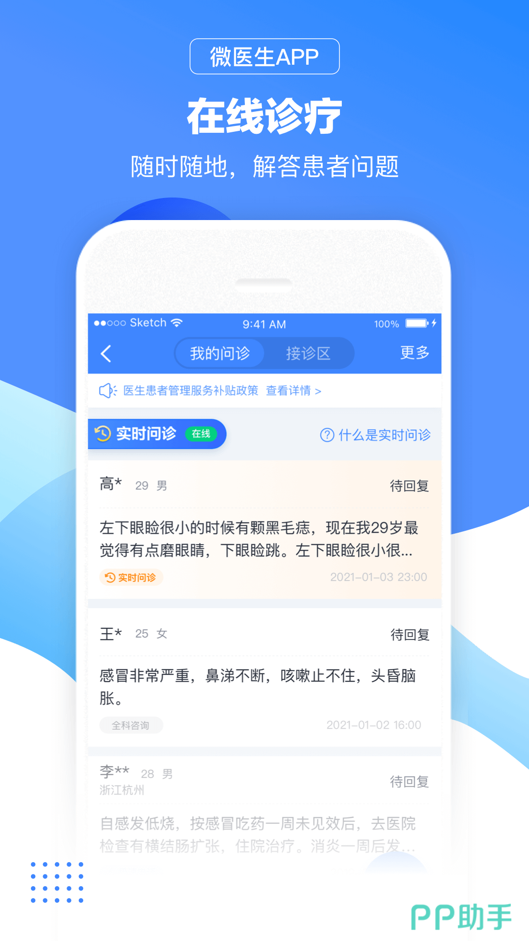 在这里医生可以借助很多不同途径,来为患者提供问诊,以及进行管理和管理随访等服务,还可以直接向其他同行发起会诊,转诊,进行轻松交流。能够给患者提供及时咨询和服务,这样可以将很多小毛病在前期就能直接治疗,防止后续继续发展。