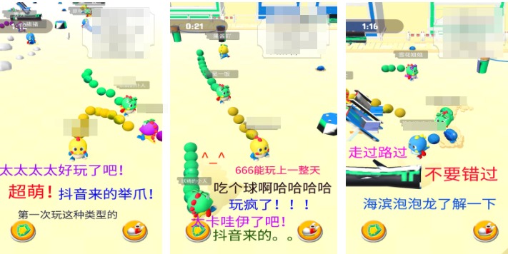 这款联机挑战的泡泡龙主题游戏玩法还是比较特殊的,加入了贪吃蛇类型的吞噬设定和多人互动的玩法,玩家们都会化身一个个可爱的泡泡龙在地图上缓慢蠕动,整体的动态效果滑稽搞笑再配以愉快气氛更受欢迎,通过吞噬其他的泡泡龙可以增加自己的体型,这种将泡泡龙与贪吃蛇进行结合的手游神作玩起来超有趣。