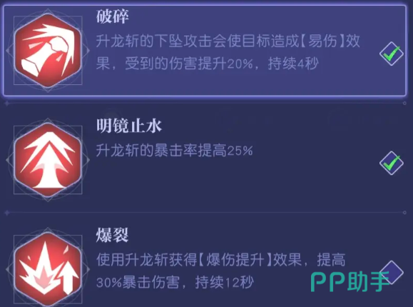 升龙斩在这里可以给大家带来的能力是给前面的敌人带去一个挑飞的控制之后,砸向地面造成171%的攻击能力,此时还会有1500多点的物理伤害数值,可以带来的压制能力当中,根据技能等级每比怪物高一级的同时可以带来伤害5%或者是10%的提升,而在后期大家选择符文搭配的时候就要注意,这里升龙斩更适合搭配的是破碎、明镜止水还有爆裂,其中搭配破碎主要是因为可以给神龙斩带来足够的下坠攻击,此时下坠攻击会使目标造成更多的硬伤,受到伤害之后还可以提升20%的输出,那么明镜止水这个符文可以给升龙斩带来的就是25%的暴击概率,爆裂这个符文可以让神龙炸获取更多的爆伤提升,在提高30%的暴击之后,还可以连续12秒的进行使用,所以当前使用暂时这几个技能效果当中可以给战士带来的各种暴击提升都是非常高的,后期在使用装备效果的时候,大家就要注意战士可以搭配起来的拓荒两件当时适合在40级之前用的。
