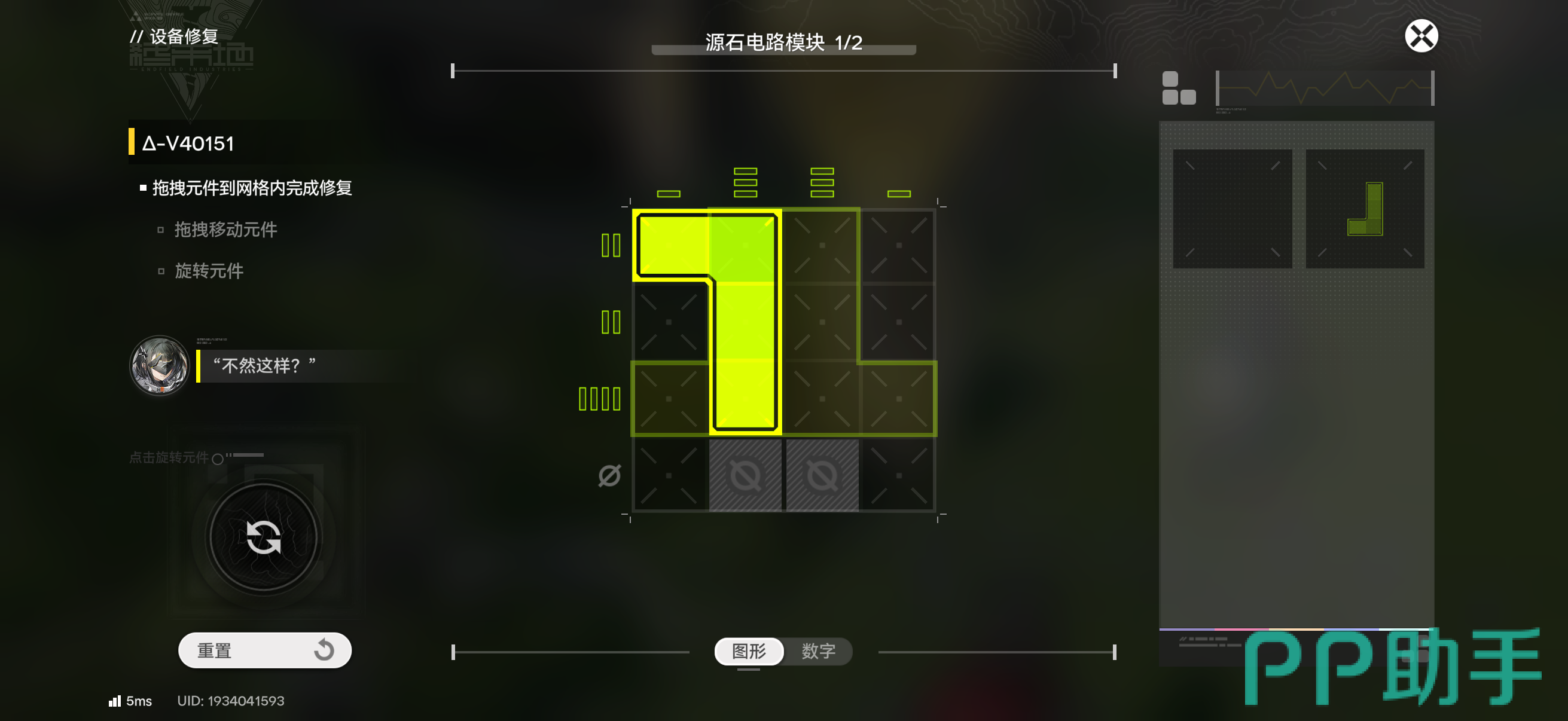 修复操作采用基于逻辑推理的空间拼合机制:界面显示由横纵坐标标注的电池槽位需求(如第3行需填入2枚电池、第2列需填入4枚电池),玩家需拖动预设图形模块,在限定网格内完成精准覆盖。所有图形支持点击旋转,适配不同布局需求。若解题受阻,可点击界面右侧“管理员”图标获取阶段性提示;该功能设有冷却时间,每次调用后需等待固定间隔方可再次使用。