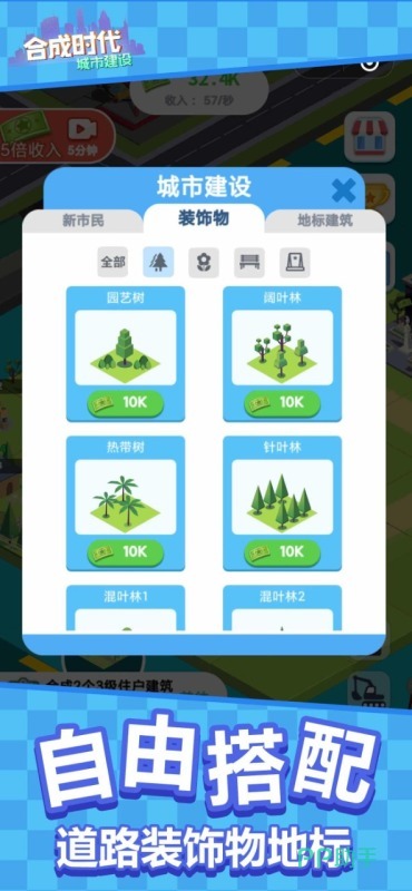 本作融合合成玩法与城市经营机制,划分住宅、商业、工业、旅游四大功能区,各区域支持十级逐阶升级路径。地标建筑不仅具备视觉标识作用,更能显著拉动游客数量与税收增长。整体采用2D卡通渲染风格,色彩明快、角色Q萌,操作逻辑清晰。经济系统中税率调节与收益结算均由玩家实时决策,策略纵深明显。