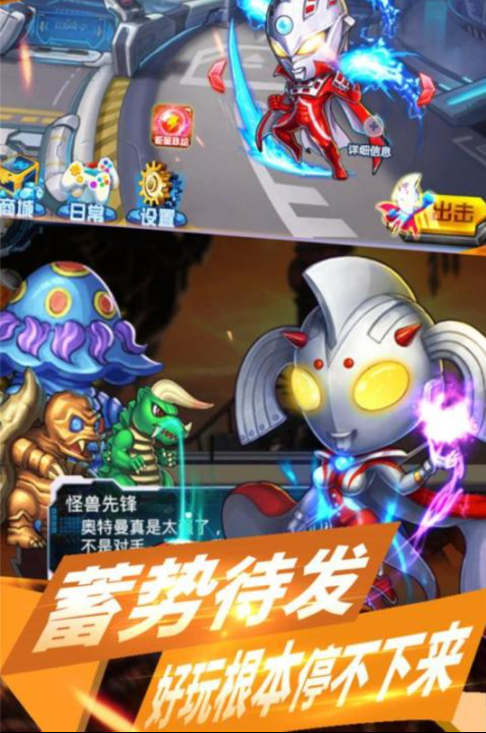 想体验童年英雄保卫地球的感觉,又或者喜欢收集培养角色慢慢变强,一定要来玩上面的游戏。奥特曼IP本身就自带情怀加成,再配合不错的游戏机制,可以为你带来很多的欢乐。