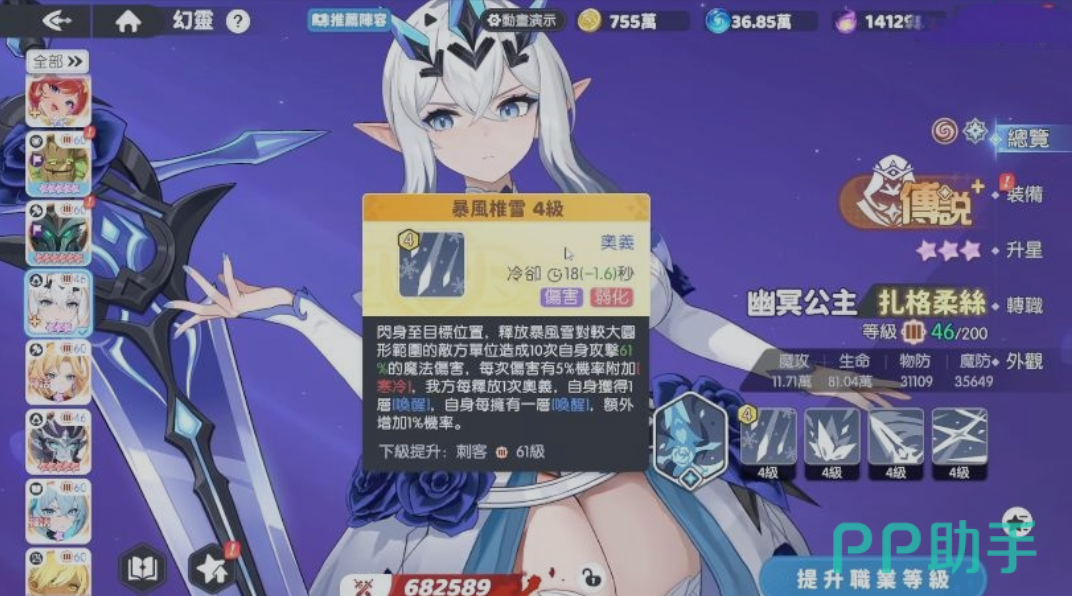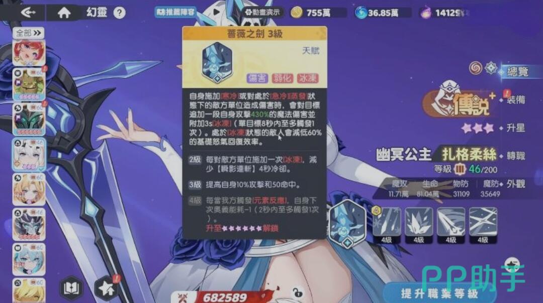 天赋技强化冰系协同机制:当敌人处于“寒冷”“急冷”或“蒸发”等特定减益状态时,扎格柔丝每次攻击将额外附加一段魔法伤害,并施加持续4秒的冰冻效果。单体目标在8秒内若被重复命中,将直接触发强制冰冻,同时其基础怒气回复效率显著降低,大幅限制敌方关键技能释放节奏。