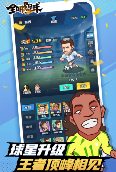 Q版卡通画风搭配轻松的玩法,不用花太多时间也能体验到足球经理的核心内容。球员数据按最新情况更新,可以签顶级球星也能培养新人,属性提升是可选择的,能打造出自己风格的球员。战术支持多种阵型,可以根据对手调整攻防,比赛中能临场指挥。赛事分PVE和PVP两种,PVE有联赛杯赛可以打,PVP能跨服对战打排位。画风幽默操作简单,加了不少社交元素进去,可以加入联盟跟盟友一起发展。