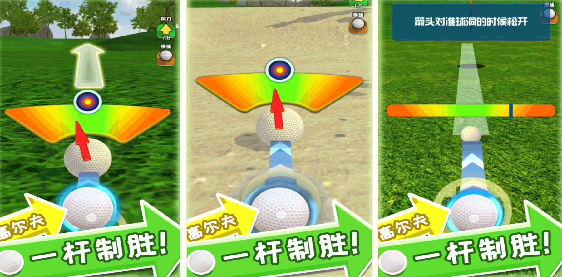 《高尔夫挑战赛》玩法聚焦于高强度实时1V1对战和专业深度的职业巡回赛模拟,给玩家创建了一个真实度很高的高尔夫赛场。玩家需要控制职业选手在发令枪响后用高频滑动来调节挥杆力度,并在复杂的果岭坡度中找到合适的推杆切入点。游戏还加入了一个详细的装备升级系统,玩家靠赢得奖金来自定个性化球包,来提升球杆的精准度与力量反馈。