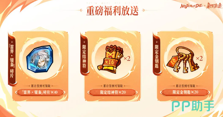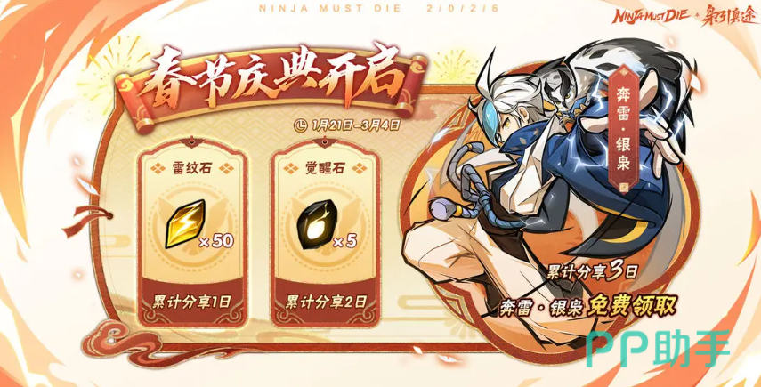 新春限时活动周期为1月21日至3月4日。参与“三日累计分享”任务即可获得联动角色奔雷·银枭;同步开启“共观雷动”签到计划,连续登录可领取雷弈·银枭角色碎片40枚、限定十连金钥匙等核心资源。