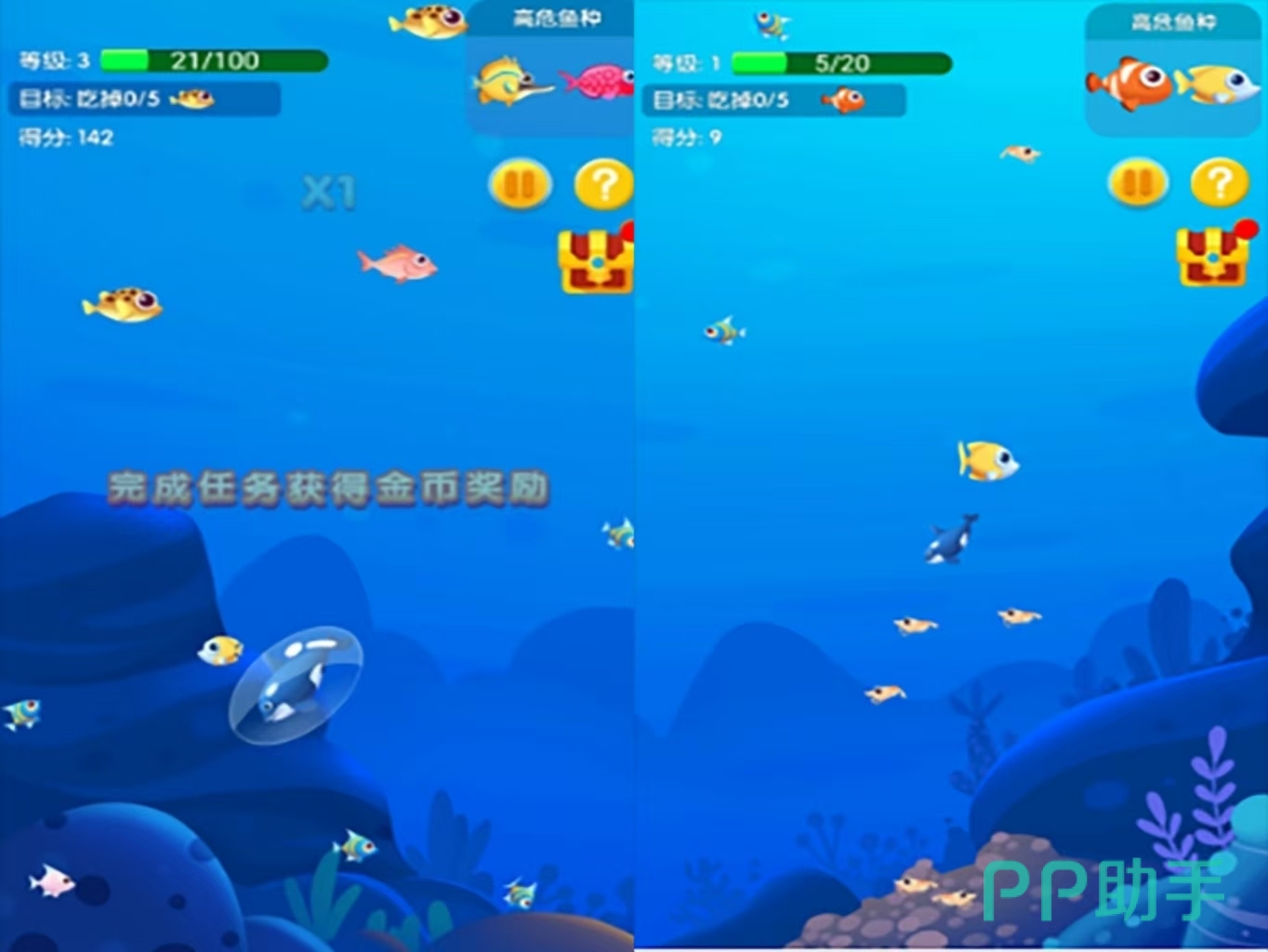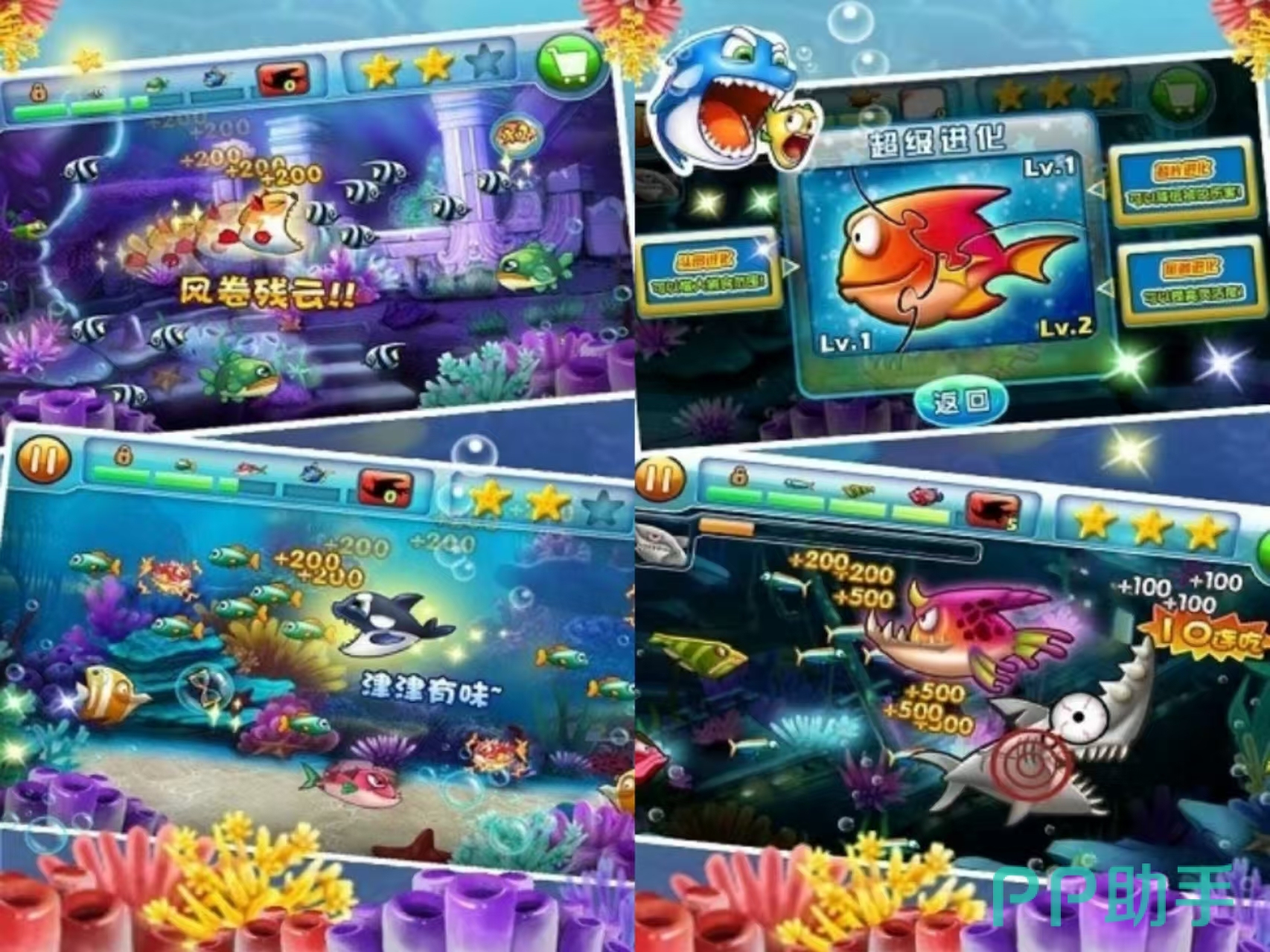最后《大鱼吃小鱼2-官方正版》这一款可是官方正版的童年IP续作,他的玩法一直没变,依旧是吞噬进化,逐渐解锁新的鱼种和技能,玩这款游戏最需要记住的就是只吃小的避开大的。并且它添加了许多的模式,有生存模式,挑战模式,还有无尽模式,玩法上更尽一层,那时候刚玩的时候,建议大家先点咬力和速度,这样,往后面玩的时候可以更轻松,小编也是靠这个方法,直接一路打到通关的。