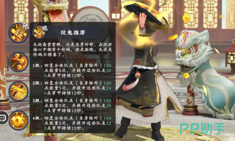 第三位为沈世海——专精真实伤害与穿甲协同的战术引擎。其攻击具备无视防御的特性,并拥有“破竹”效果强化输出效率。当触发迅捷攻击时,可激活能量联动机制:除自身外,为所有队友每10秒提供5次能量恢复,每次恢复120点能量值,大幅提升全队技能释放频率。同时,其绝招可在10秒内削减敌方200点固定防御值,并衔接多段追击,为团队制造高强度破防窗口,尤其适配依赖穿甲叠加的物理输出体系。