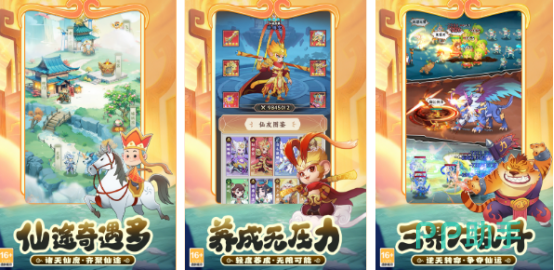 基于经典西游题材重构的新锐IP,采用高辨识度水墨晕染美术体系,花果山、流沙河等场景呈现鲜明地域气质与东方意境。玩法融合空投式RPG成长机制,通过灵气掠夺战、关卡挑战等路径推进伙伴养成,构建差异化角色强化路径。