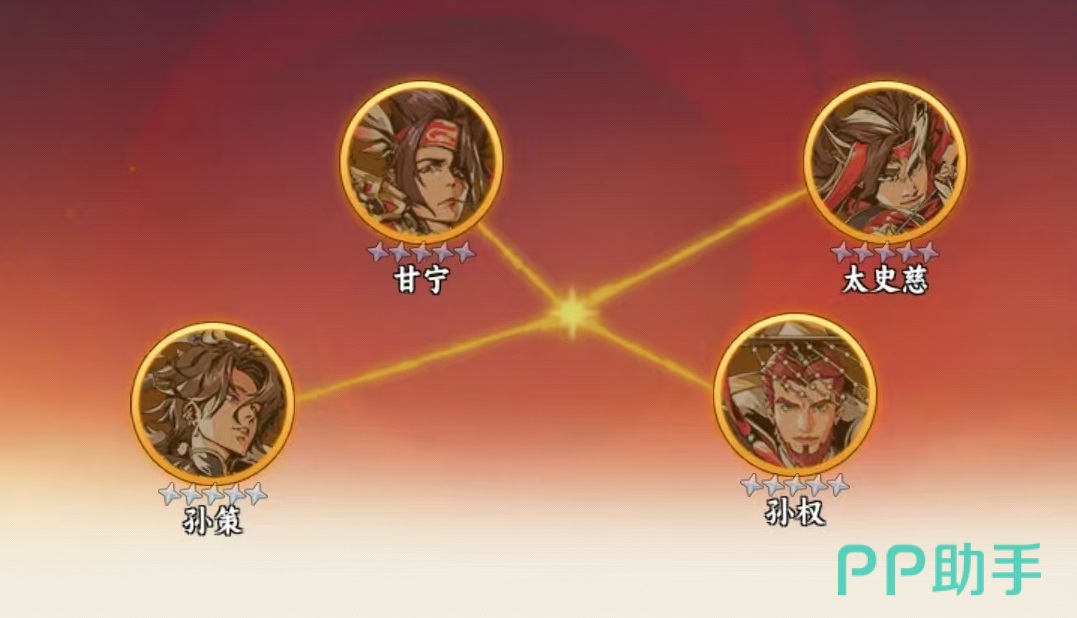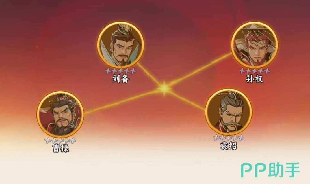 在阵容协同层面,优先激活“制霸江东”四人组(孙权、孙策、甘宁、太史慈)可触发完整羁绊效果:战斗前两回合全队暴击率提升;孙策首动触发“小霸王”效果;每回合开始时四人各叠加1层“制霸”,分别提供增伤与减伤双重属性增益,形成攻防一体的正向循环。另一关键羁绊“关东诸侯”建议由曹操、刘备、袁绍三人组成——开局即为全体友军附加“同辉”状态,提升整体输出;且只要曹操存活,每回合可对敌方施加“压制”效果,限制其治疗收益,与孙权的治疗反制形成策略互补。