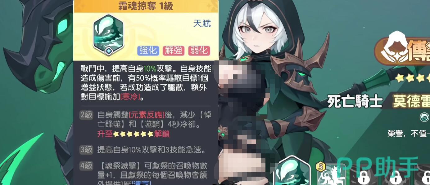 核心机制围绕“增益清除”展开:死亡骑士所有主动技能均具备稳定驱散效果,可精准移除敌方单位已激活的各类增益状态(包括但不限于攻击力提升、减伤护盾、回能加速、行动条加速等)。这一特性不仅直接削弱敌方战力,更间接强化己方输出环境——当敌方失去关键增益支撑后,其生存能力与持续输出效率将大幅下降,为我方后排创造安全且高效的输出窗口。