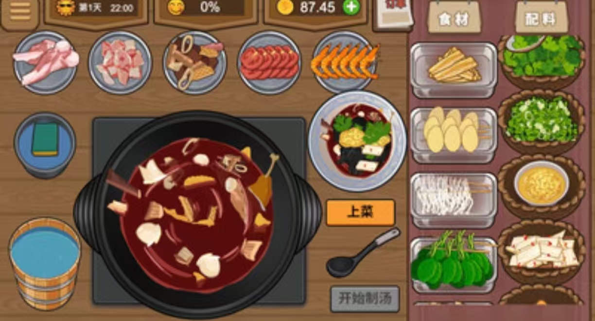故事始于一家濒临倒闭的老字号火锅铺,玩家需通过精准定价、口碑营销与菜品迭代实现逆袭。系统内置动态顾客反馈机制,不同年龄与偏好的食客会提出具体需求,如“少辣”“加蛋”“配冰镇酸梅汤”。经营所得可用于翻新门头、增设甜品台与咖啡角,并持续研发鸳鸯锅、四宫格等创新锅型,强化差异化竞争力。