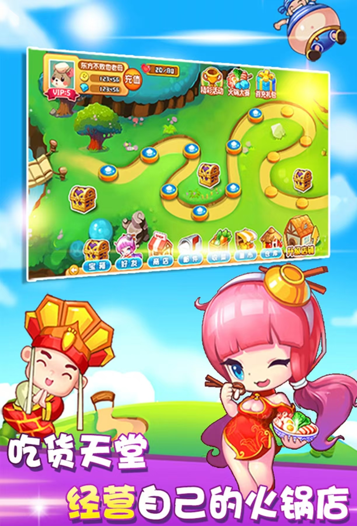 融合三消玩法与经营成长线,每关提供限定食材图块(如牛肉丸、金针菇、藕片),玩家需滑动连接三个及以上同类型元素完成消除,从而获取金币、经验与特殊道具。消除成果直接影响上菜效率与顾客满意度,连续消除可触发“沸腾特效”,大幅提升收益。随着店铺等级提升,开放更多桌位、智能取餐柜与定制化蘸料站。