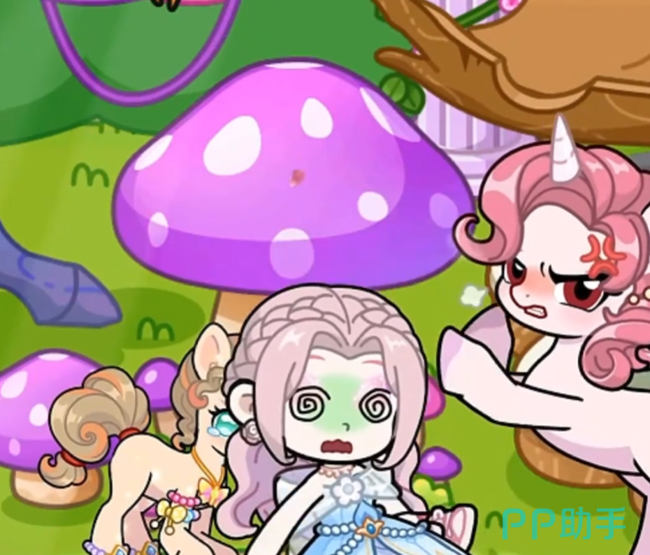 初入异界时,公主主动接触正在劳作的陆马,却因身份不明遭拒斥。她未选择退避,而是以随身饰品为信物传递善意,成功建立初步信任。随后突发变故:附近独角兽陷入异常躁动,魔法能量失控,直指陆马幼崽。公主立即介入,以自身为盾承受攻击,阻止事态升级。