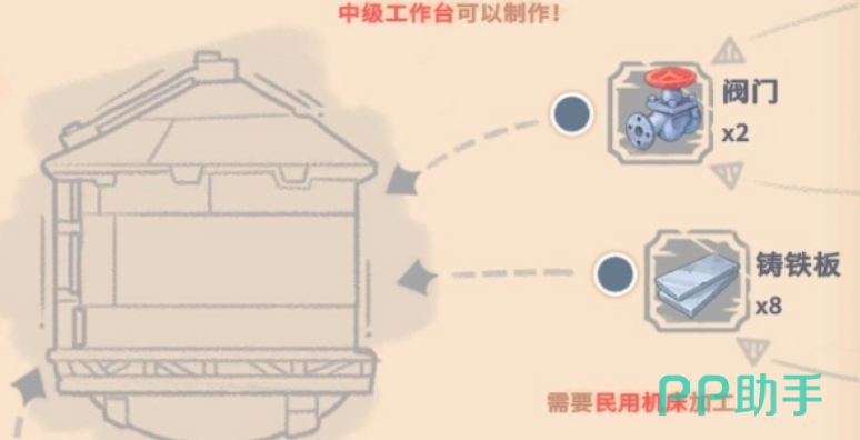 后期可通过科技树解锁进阶水箱。升级版型号基础容量提升至50单位,并支持连接露水收集器管道实现自动灌注(需铺设青铜导管并激活流体协议模块)。其合成表要求钛合金板×1、精密齿轮×3及高压密封环×2,材料门槛较高,但投入回报率突出:单次注满后可持续支撑全工坊满负荷运行超8小时,大幅优化后勤管理颗粒度。