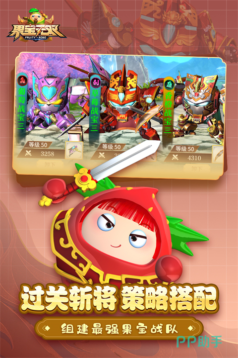 融合水果拟人化设定与机甲变形机制,打造风格鲜明的轻科幻动作手游。香橙战宝、菠萝战宝等角色均基于真实果蔬形象进行机械重构,每名单位拥有独立必杀技与华丽演出动画。全作收录超百款可收集机甲单位,支持升星与等级强化双重成长线,持续提升基础战力与特殊技能强度。