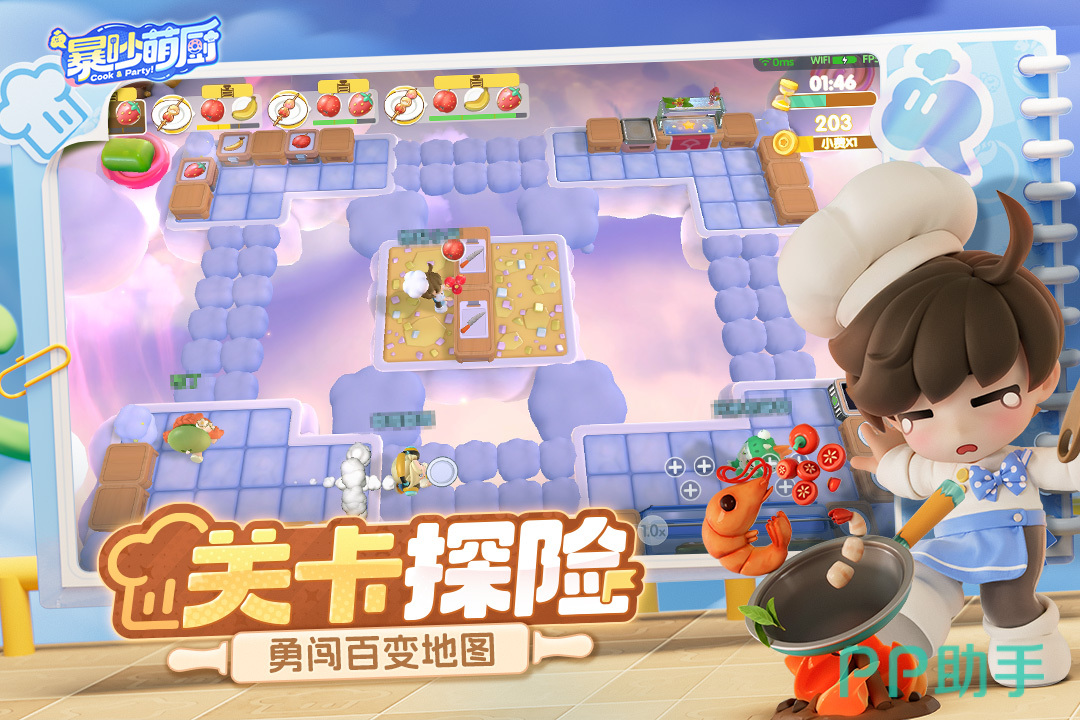 作为多人经营品类的标杆之作,《胡闹厨房》以高自由度关卡设计与强物理反馈见长。从摇晃的甲板到断裂的桥梁,从自动移位的操作台到突然塌陷的地面,每一关都在挑战玩家对空间、时机与指令传达的理解。没有固定解法,只有持续沟通与动态应变——喊出“先煎蛋!”“别动锅!”成为团队生存的基本语言。
