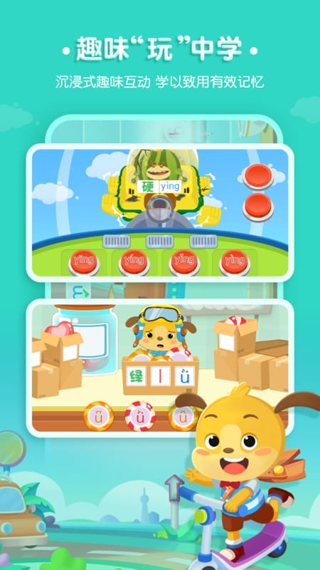 本作采用全动画叙事驱动学习进程,构建拟人化拼音世界:孩子可参与“字母钓鱼”“声母巡逻队”“韵母花园探险”等主题任务,在动态交互中掌握23个声母与24个韵母的标准发音。每个音素均配备口型特写动画与真人示范音频,辅以语音识别即时反馈机制,强化听辨与模仿能力。