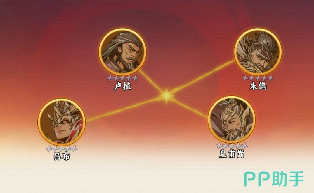 阵容构建方面,吕布适配两大主力羁绊——“荒桀乱舞”与“汉末飞将”。前者需董卓、吕布、张辽三人同时上阵,推荐前排布阵为张辽(左)、董卓(中)、吕布(右),充分发挥董卓高额承伤能力,配合吕布与张辽共享的“乱舞”机制,怒气技可覆盖全体敌人并附加额外伤害。更关键的是,该羁绊具备退场联动效果:任意一人阵亡,其余两人立即获得暴击率、暴击伤害及吸血效果提升。“汉末飞将”则需吕布、卢植、朱俊、皇甫嵩四人组成,提供全属性加成与先手值增益,进一步巩固吕布的行动优先级与综合生存能力。
