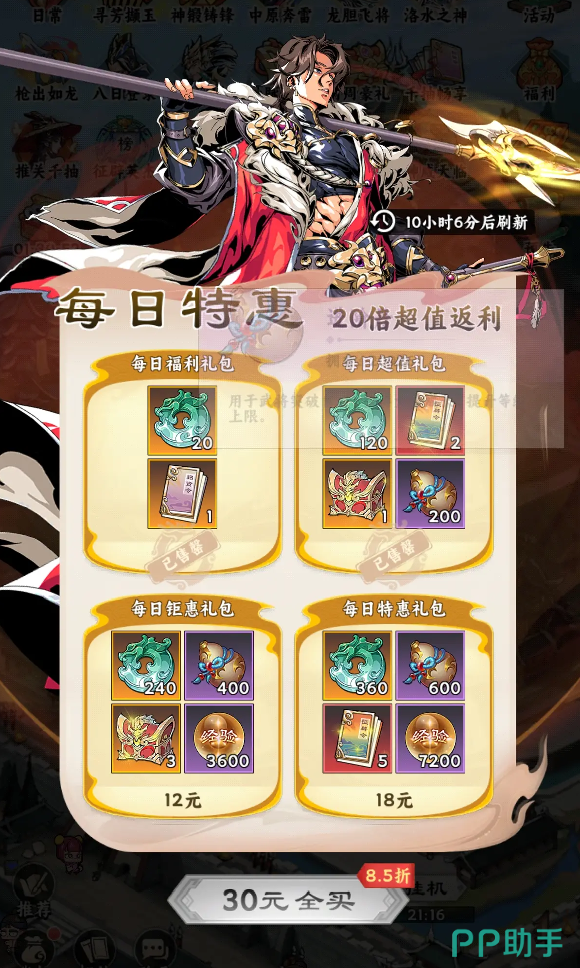 游戏整体采用轻度商业化路线,零氪与微氪用户均可完整体验全部内容。所有核心武将——包括高稀有度角色——均不设抽卡付费池,而是通过明确、可预期的免费途径获取:新手引导阶段赠送初始主力;日常战斗商店定时刷新;挂机系统持续产出基础武将碎片;周常任务提供整卡兑换资格。