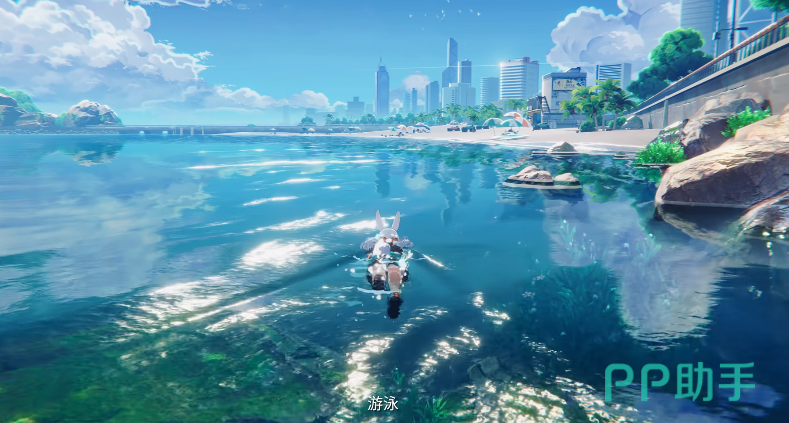 动态水面系统是本作另一大技术亮点:水面具备实时阳光反射效果,角色入水时可触发物理涟漪,波纹扩散符合流体动力学逻辑。结合全局气候系统(包括昼夜更替、天气变化与环境光照联动),整体视听体验高度拟真,营造出轻松舒缓又不失真实质感的探索氛围。