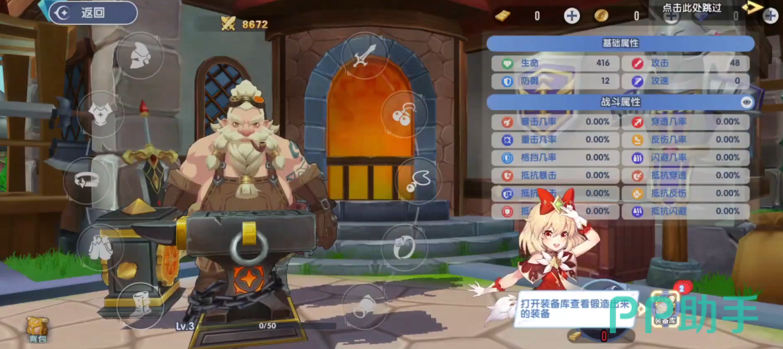 游戏初始阶段即自动解锁铁匠铺界面,凸显其基础性地位。玩家在此可实时查看角色当前各项基础属性与战力构成,并直接操作武器锻造流程。每次成功产出高于当前佩戴等级的武器,系统将即时提示替换选项,实现战力无缝跃升。所有锻造动作均在铁匠铺内闭环完成,无需跳转其他子系统。