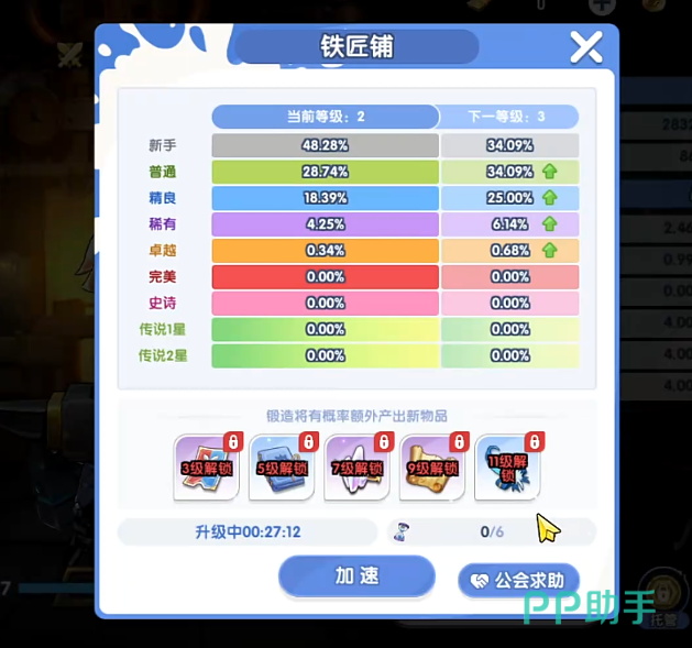 铁匠铺本身具备独立等级系统。通过持续锻造不同种类武器积累经验,可提升铁匠铺等级,从而解锁更高阶武器配方与更强力属性加成。为提升锻造效率,玩家可使用“雷神之锤”道具,该物品可稳定提供额外锻造经验加成,是加速成长节奏的重要资源。