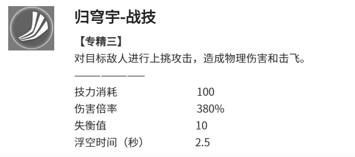 专精三状态下,主控重击可积累16点失衡值;下落攻击拥有180%倍率,适用于垂直维度切入;而处决攻击高达900%倍率,需在目标处于失衡状态时触发,是终结低血量敌人的关键手段。“归穹宇”作为主动技,兼具范围伤害与战术位移功能,合理释放可改变战场能量分布。天赋“斩锋”支持最高5层叠加,每层提供8点攻击力加成,持续10秒,进一步放大高频输出收益。
