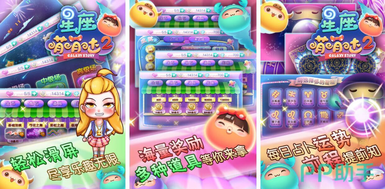 延续Q版美术风格的休闲消除续作,整体色调清新明快。操作方式为滑动连接同星座符号完成消除,关卡目标包含能量收集、星尘合成等多样化设计。每日签到与活跃任务可兑换占卜道具,使用后生成个性化运势报告,支持一键分享至主流社交平台,便于星座同好交流互动。